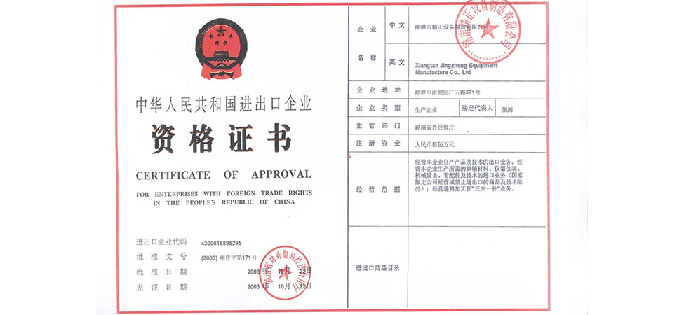 湖南精正設(shè)備制造有限公司成立;2月,與清華大學(xué)材料科學(xué)工程系聯(lián)合研制屬于國家863計劃項目的陶瓷膠態(tài)注射成型機;10月23日,獲得國家進(jìn)出口經(jīng)營權(quán)。
